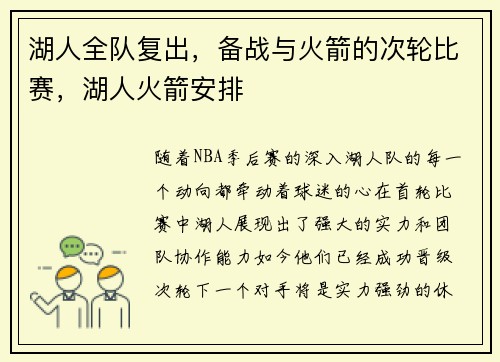title>湖人全队复出,备战与火箭的次轮比赛,湖人火箭安排 - 星空体育(China)官方网站 STARRYSKY SPORTS